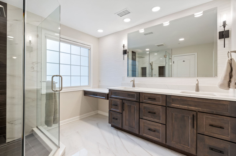 The primary suite includes a luxurious updated bath with rain shower, double vanities, and a private water closet. An additional upper-level suite offers its own en-suite bath—perfect for guests or multigenerational living.