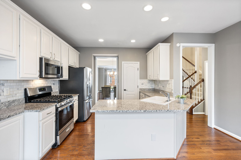 Beautifully maintained and updated, this townhome offers four levels of elegant living space and is flooded with natural light. The spacious eat-in kitchen features stainless steel appliances, granite countertops, and a classic subway tile backsplash, opening directly to a warm and inviting family room with a gas fireplace. Hardwood floors, recessed lighting, and abundant windows enhance the open, airy feel throughout.
