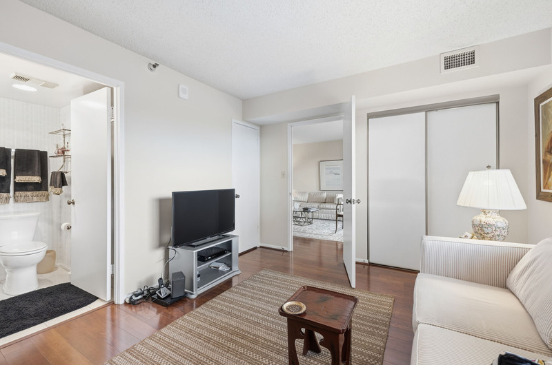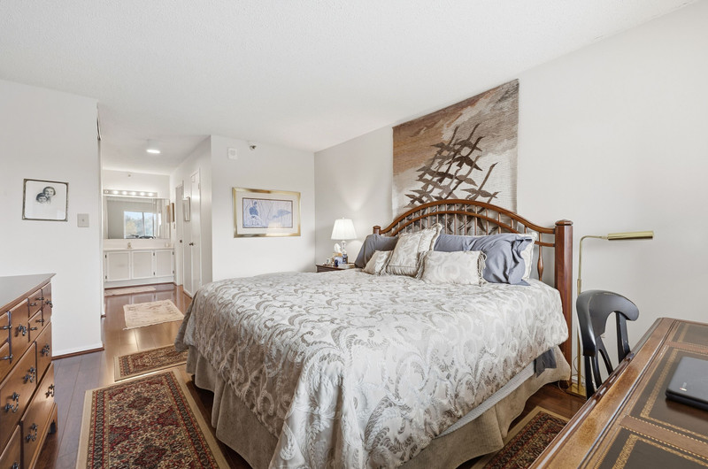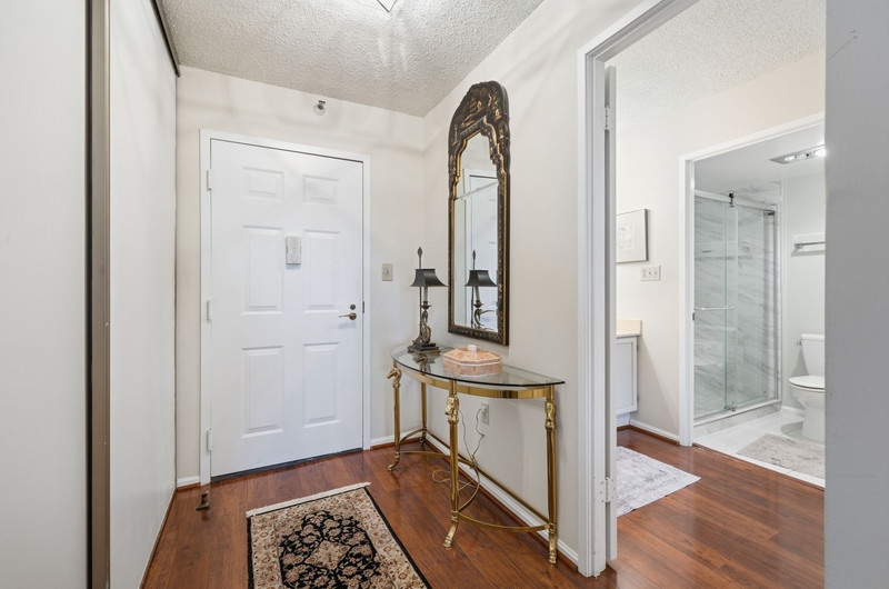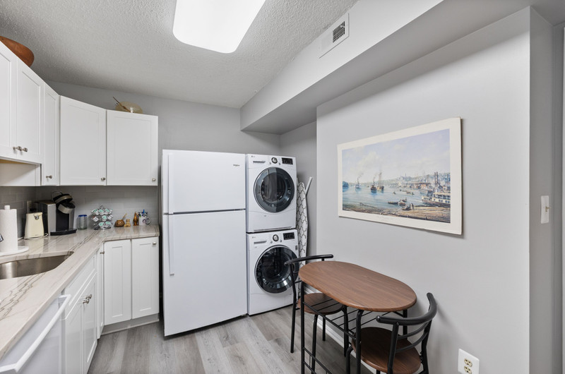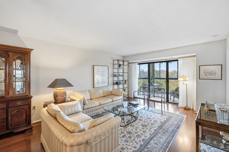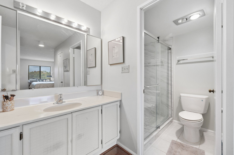Move right into this charming 2-bedroom, 2-bath condo at The Greens at Leisure World! Hardwood floors span the entire home, leading you to an updated kitchen with classic white shaker cabinetry, granite counters, and a full-size washer/dryer combo. Both bedrooms feature en-suite baths, with the primary offering a spacious walk-in shower and excellent storage. Relax on the sunlit balcony overlooking beautiful trees and the golf course. Includes assigned garage parking space (#224). Comfort, convenience, and views—this one has it all!