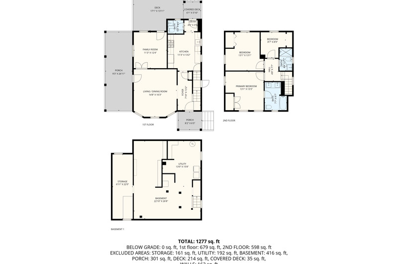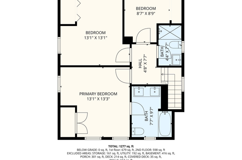Upstairs, the spacious primary bedroom features a private en-suite bath, along with two additional bedrooms that share the hall bath.