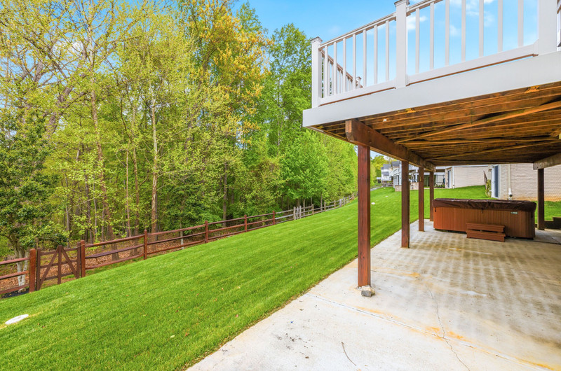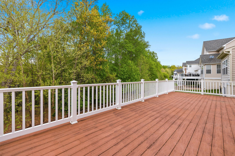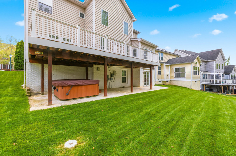 Built just 14 years ago, the home offers a two-car garage, a walk-out basement (featuring brand new carpet), and an expansive 1,400 sq. ft. Trex deck overlooking a serene, tree-backed setting—perfect for entertaining or quiet evenings outdoors. Beneath the deck, a finished concrete patio creates additional usable space, complemented by commercial-grade VOLT landscape and deck lighting, automated drip irrigation, and custom dry field stone landscaping set in six inches of conditioned topsoil.