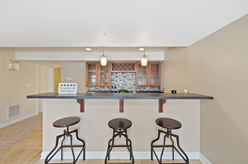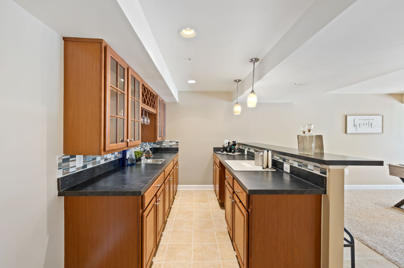 Custom wet bar with cabinetry (and new granite counters soon to be installed),