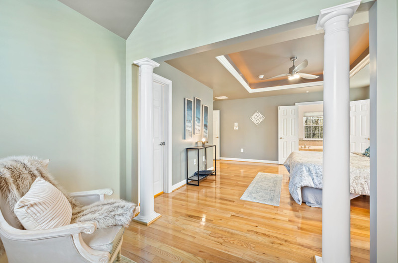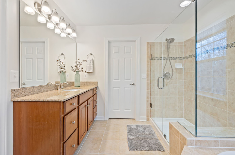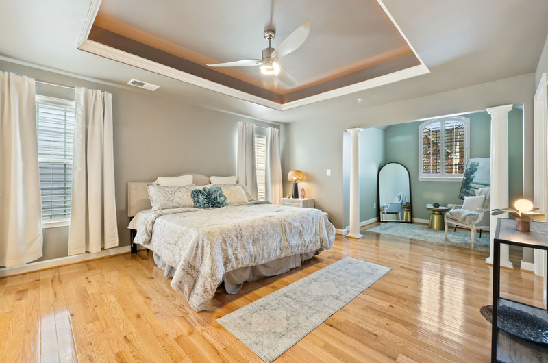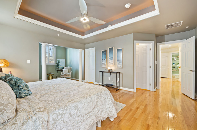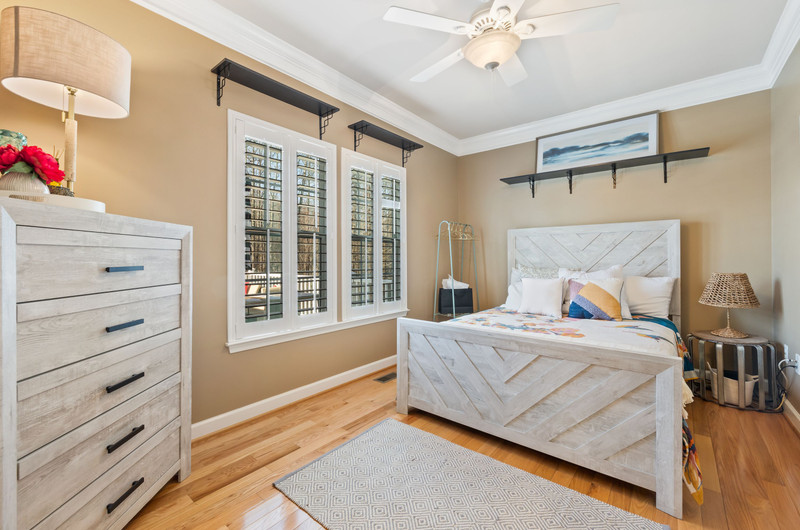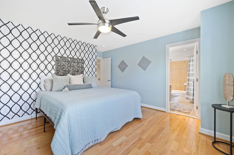 Inside, the craftsmanship and upgrades are exceptional. The main and upper levels feature solid oak flooring throughout (main level flooring is brand new), while all bathrooms are upgraded with granite countertops, including a luxurious primary bath with premium seamless shower glass and upgraded systems. Every room is outfitted with ceiling fans and hardwired Cat 5, supported by a full media/network closet and independent breaker systems for each room.